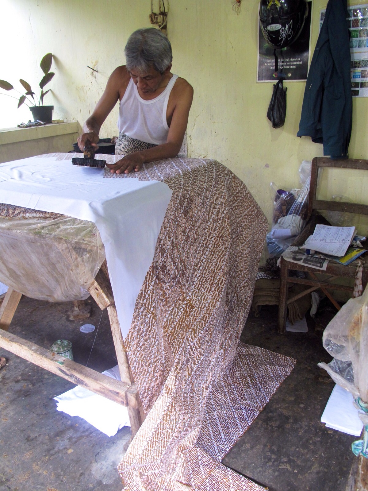 Our first stop was at Laweyan batik Village, an area where batik has been traded since the 14th Century. We visited a little workshop and I watched the men use caps ( pronounced tjaps) to print in wax the classic Parang design onto reams of cotton.