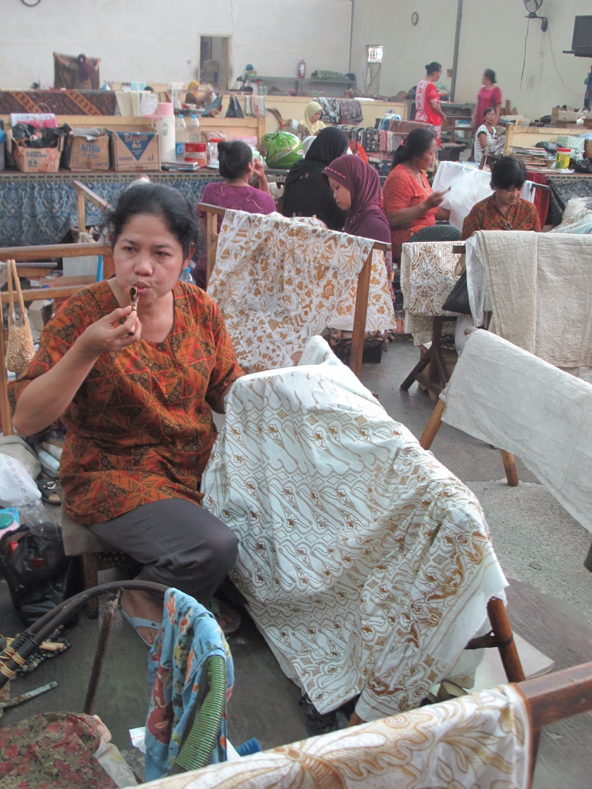 How different the working conditions were in the villages where at least there was ventilation and fresh air. I felt really quite shocked to see this, many of the workers were quite elderly and it didn’t look as if they were having fun. They were all working very hard, under obvious pressure producing batik that would either be sold expensively in the shop or made into bespoke clothing somewhere else.