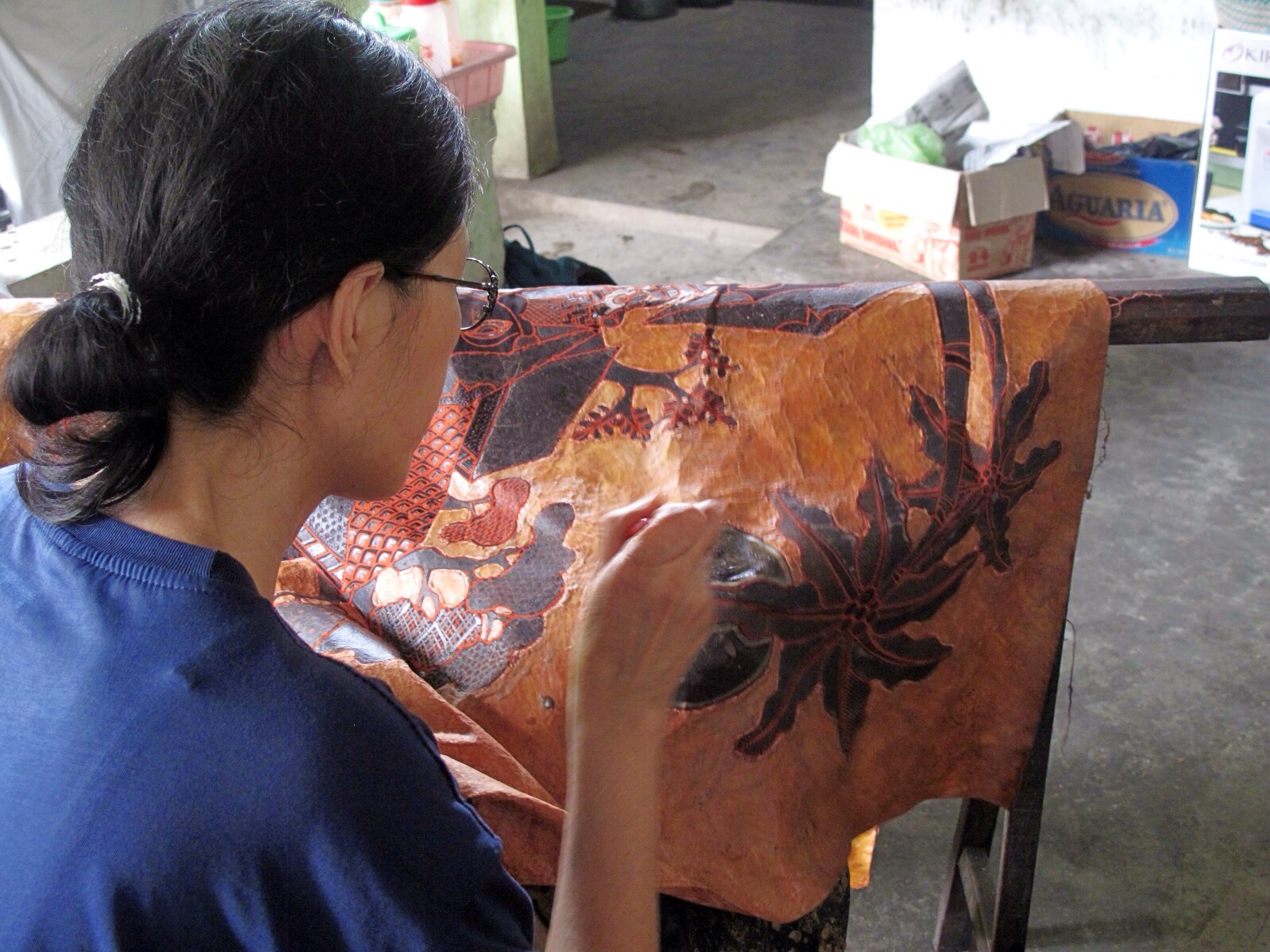 He was a sparkly eyed, gentle mannered man, pleased to show me his work. He told me I had just missed the ladies who helped with the canting work, so no pictures of them. Mr Trisno has had several exhibitions in Europe and America and one had just ended in Madrid.