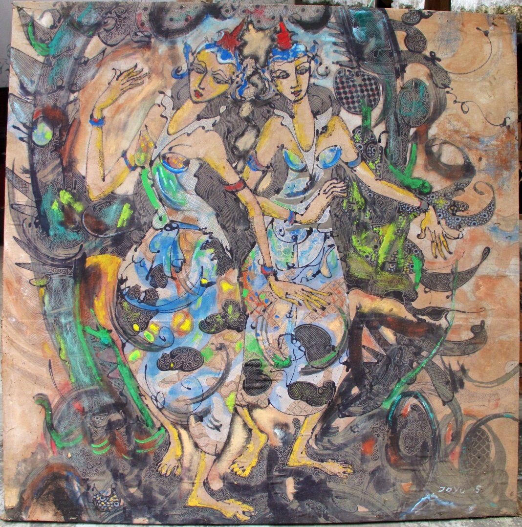 The next artist I met was Bambang Darmo a real character certainly living up to his name ! Large and jovial he works in rainbow colours in an unconstrained, expressive manner including masks, women and fish as subject matter, to name only a few.