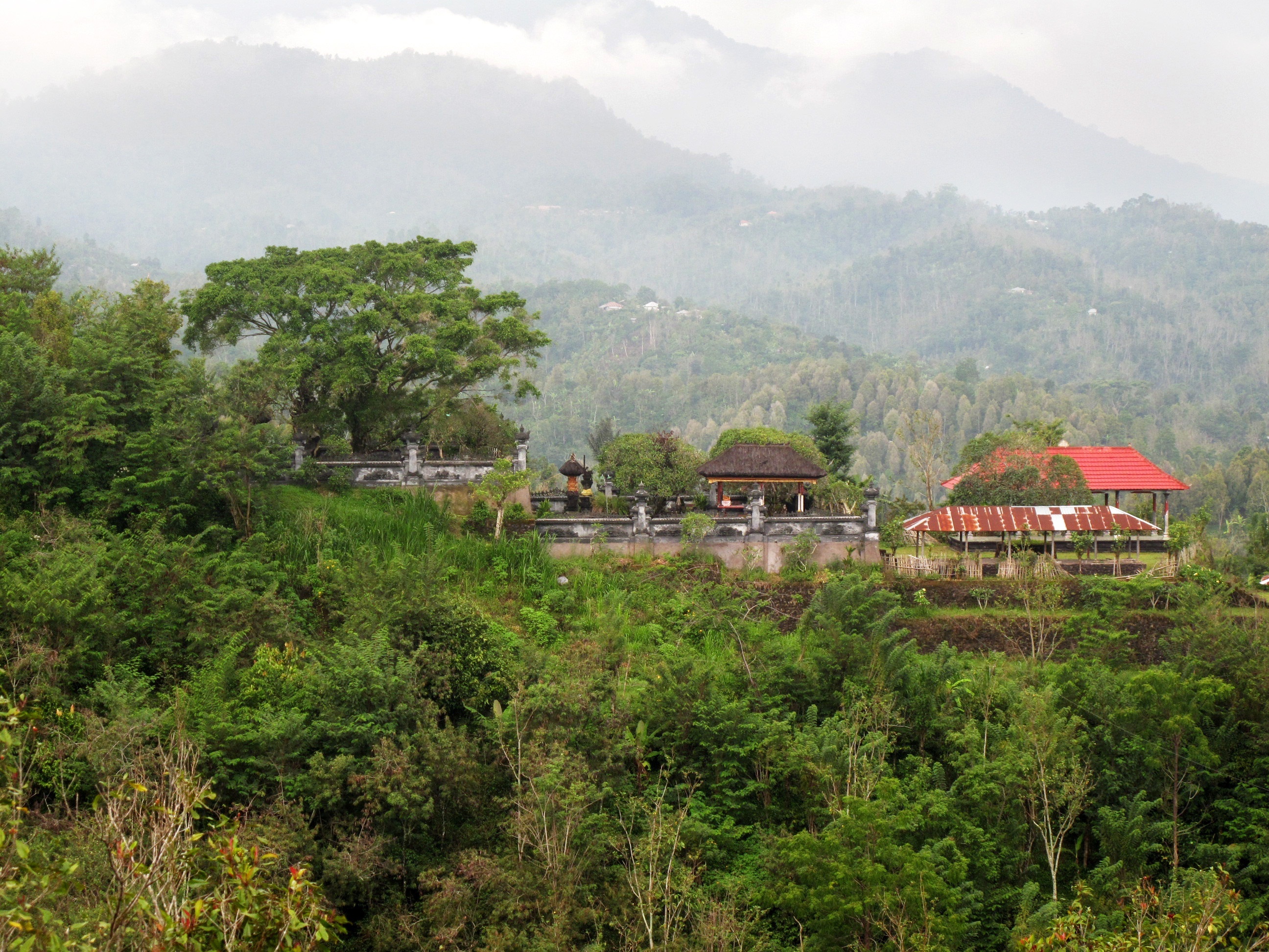 We took the road that circled Mount Agung,the largest mountain in Bali. Unfortunately the cloud made it misty and we couldn’t actually see the top but the jungle like forest was beautiful and the steep slopes covered in all sorts of ferns and tree ferns made up for missing Agung. As we made our decline the temperature increased and the sun shone through, in the distance we could see the sea.