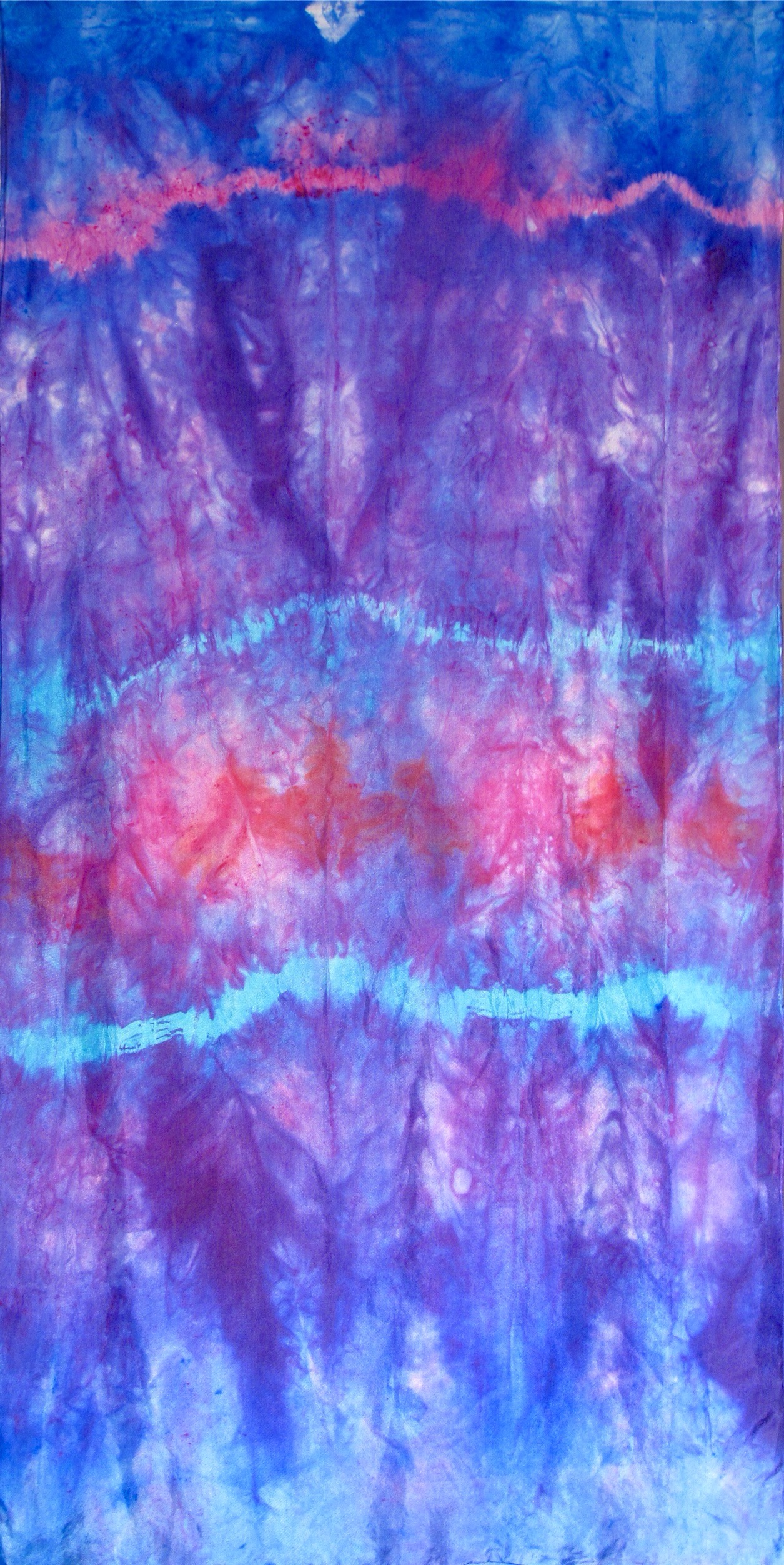 A second tie dye achieved the wavy magenta and red stripes. A Fun and fascinating technique  to “play” with.