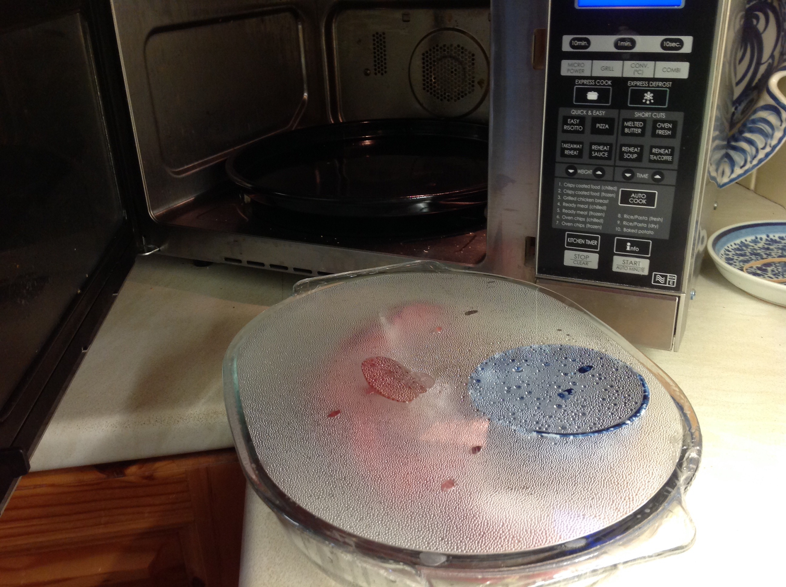 Carefully remove from microwave and peel back cling film wearing oven gloves.