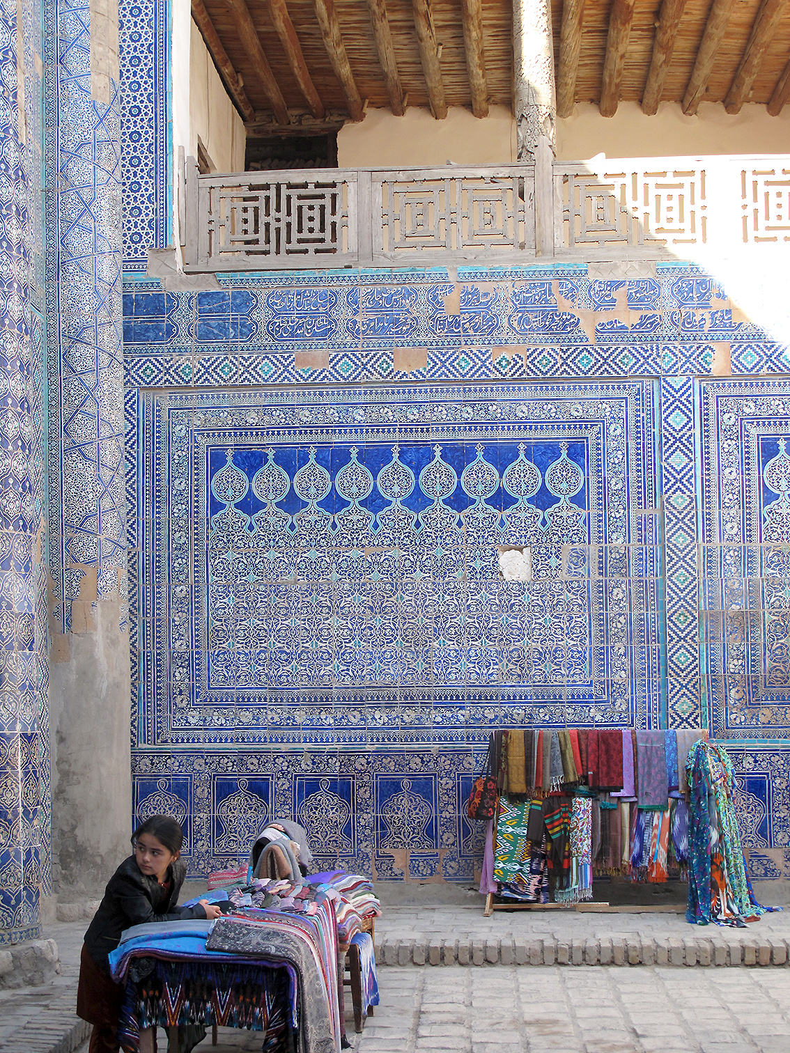Tiled walls in courtyard of Kunya-Ark, Mosque, Khiva.