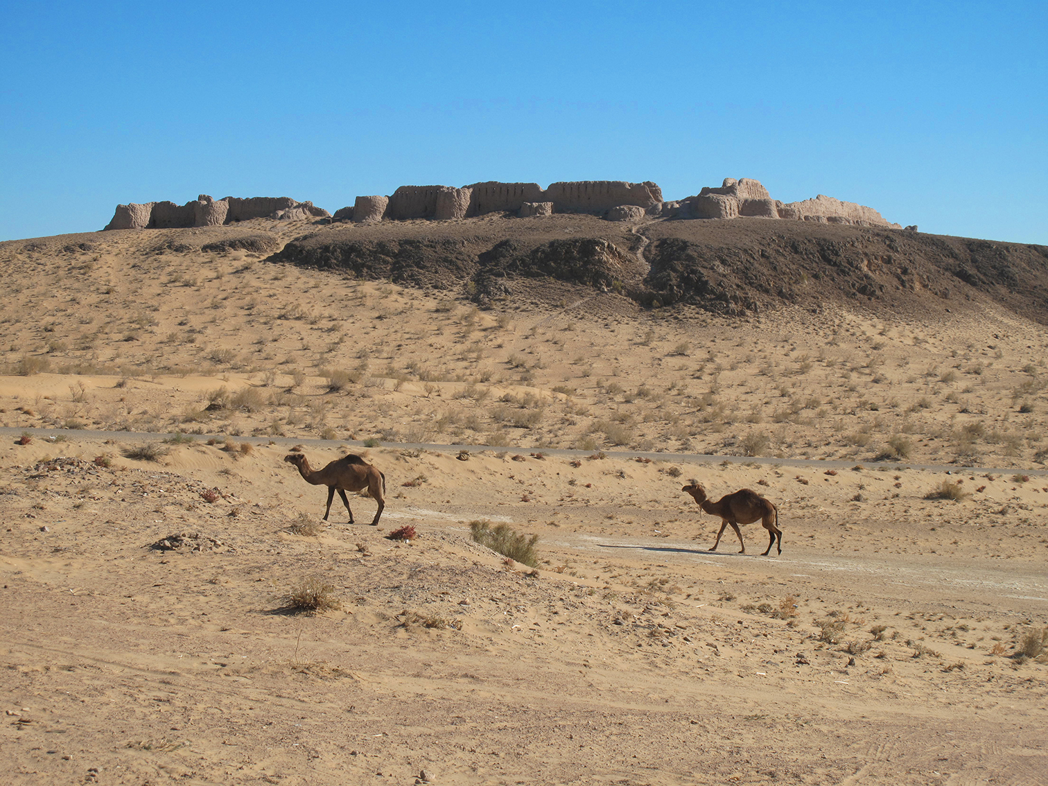 Sitting on ancient remains of Zoroastrian city, Nukus area, Uzbekistan.