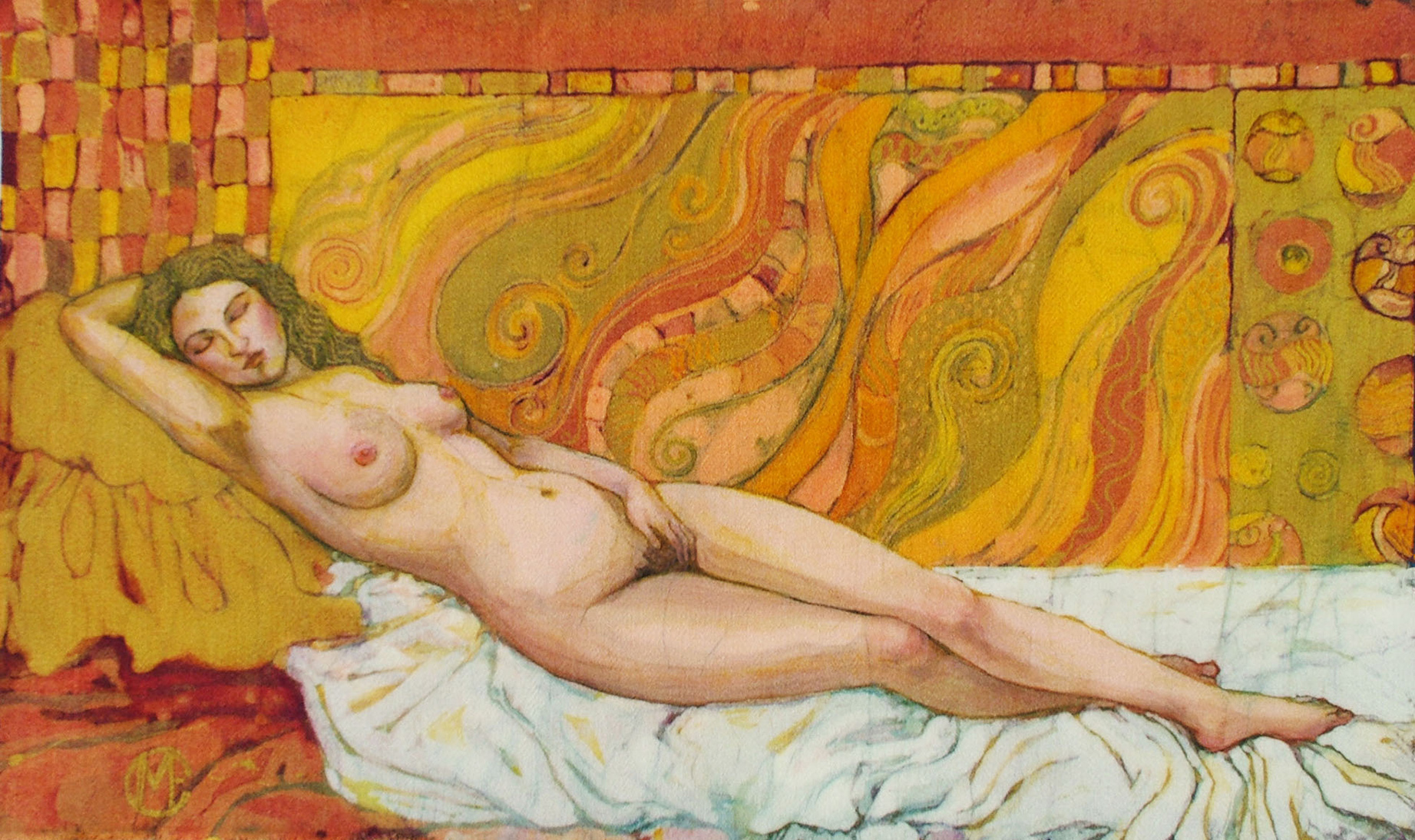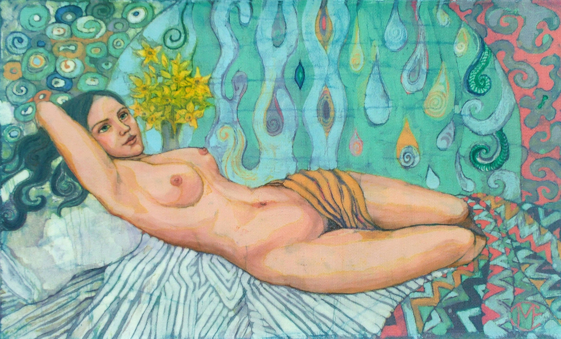 Danae, batik on cotton, 40cm x 58cm. Danae detail, batik on cotton.