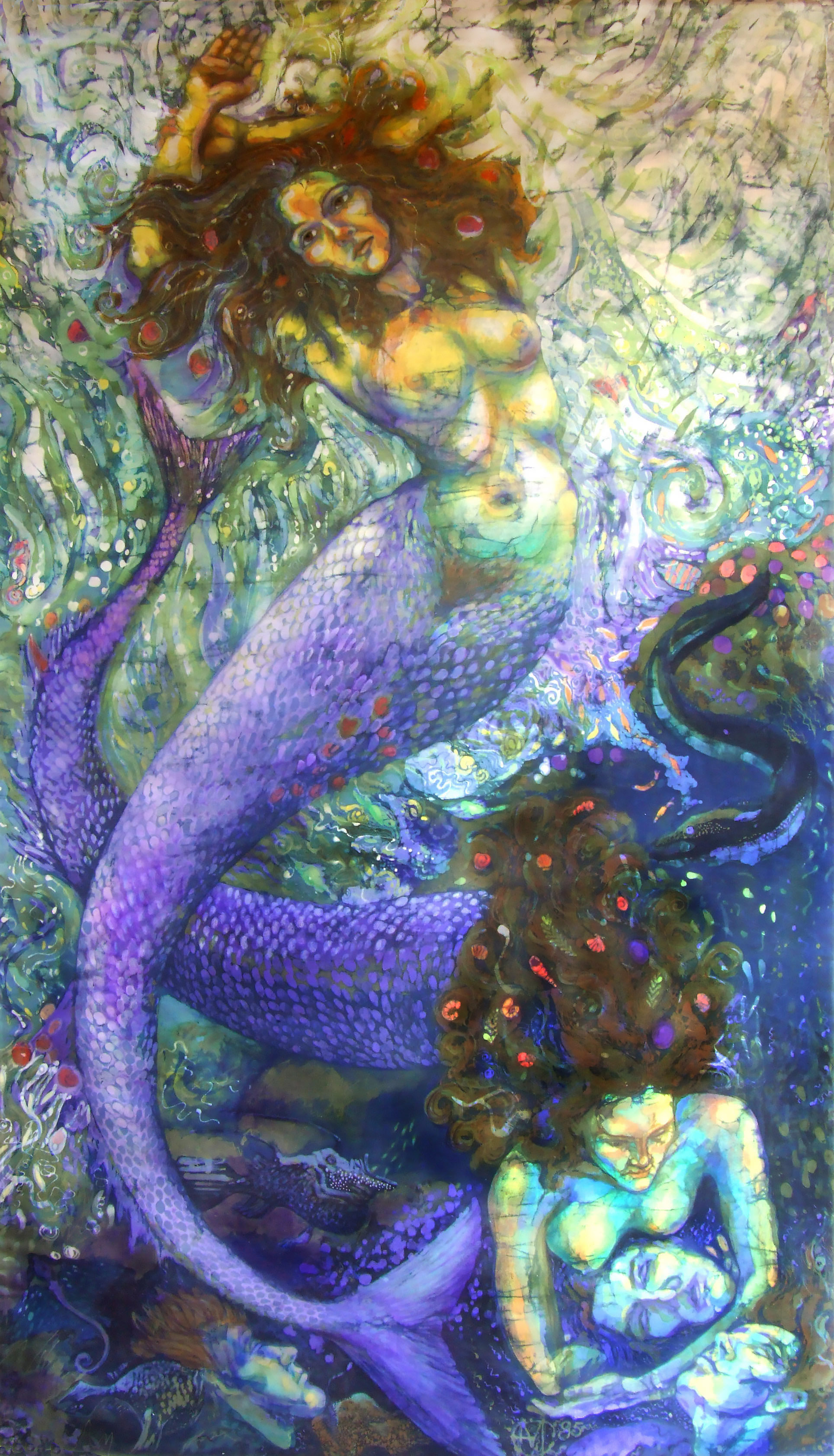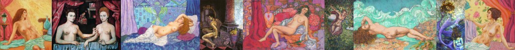 Mermaids or sirens in art have interested me mythologically and aesthetically throughout my life. In Sirens I chose my friend Susie as the model for both sirens and used studies of an ex boyfriend for the collection of perished seafarers
